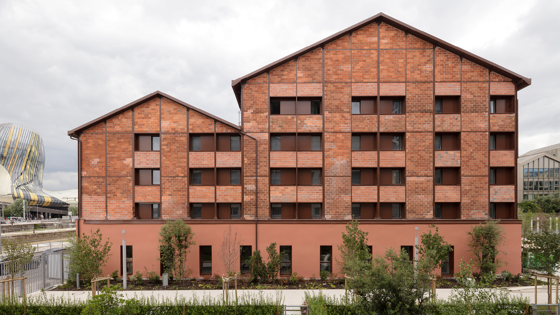 L’ilôt P2, dont l’architecte opérateur est Leibar & Seigneurin, marque l’entrée du nouveau quartier des bassins à flot dessiné par l’ANMA. Dans la composition et le rythme donné par les bâtiments conservés et réhabilités au nord de la parcelle, deux nouveaux bâtiments de 36 logements chacun viennent occuper l’angle du quai de Bacalan et du Quai du sénégal. Une école supérieure vient s’installer dans le bâtiment existant au nord. Ce bâtiment est distribué par une circulation périphérique légère pour tirer profit de la vue sur les bassins et s’éloigner des fondations de la structure existante. Le foyer habitat jeune de 105 chambres environ vient s’insérer dans le deuxième bâtiment conservé en cœur de parcelle. Une extension contemporaine, dans le gabarit de l’existant crée une rue intérieure, véritable cœur du projet et qui participe à animer la façade sur le quai du Sénégal.